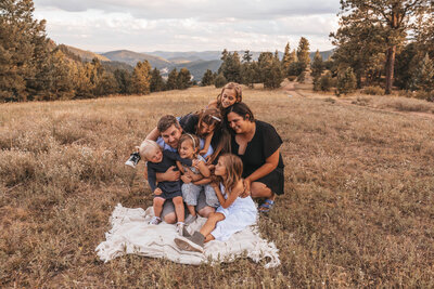 Family photos don't have to be stiff and uncomfortable. You can dance and have tickle fights. We can run through the field in the middle of the mountains and climb the trees and get muddy. We can all tackle dad and climb all over each other in a huge dog pile in our dresses. This is your life, let's remember it right.